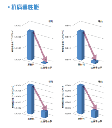 NAKA扶手抗病毒性:8小時能達(dá)到99%以上的抗病毒效果:原來的樹脂扶手與抗病毒配方的樹脂扶手在亮的地方與暗的地方分開進行了測試。隨著時間推移,抗病毒配方的樹脂扶手有了明顯的效果,8小時后觀測出了99%以上的抗病毒效果。根據(jù)安裝場所及使用條件,其結(jié)果是不同的,使用抗病毒扶手,降低了傳染病的風(fēng)險,可作為維持衛(wèi)生清潔環(huán)境的產(chǎn)品所使用。如圖三